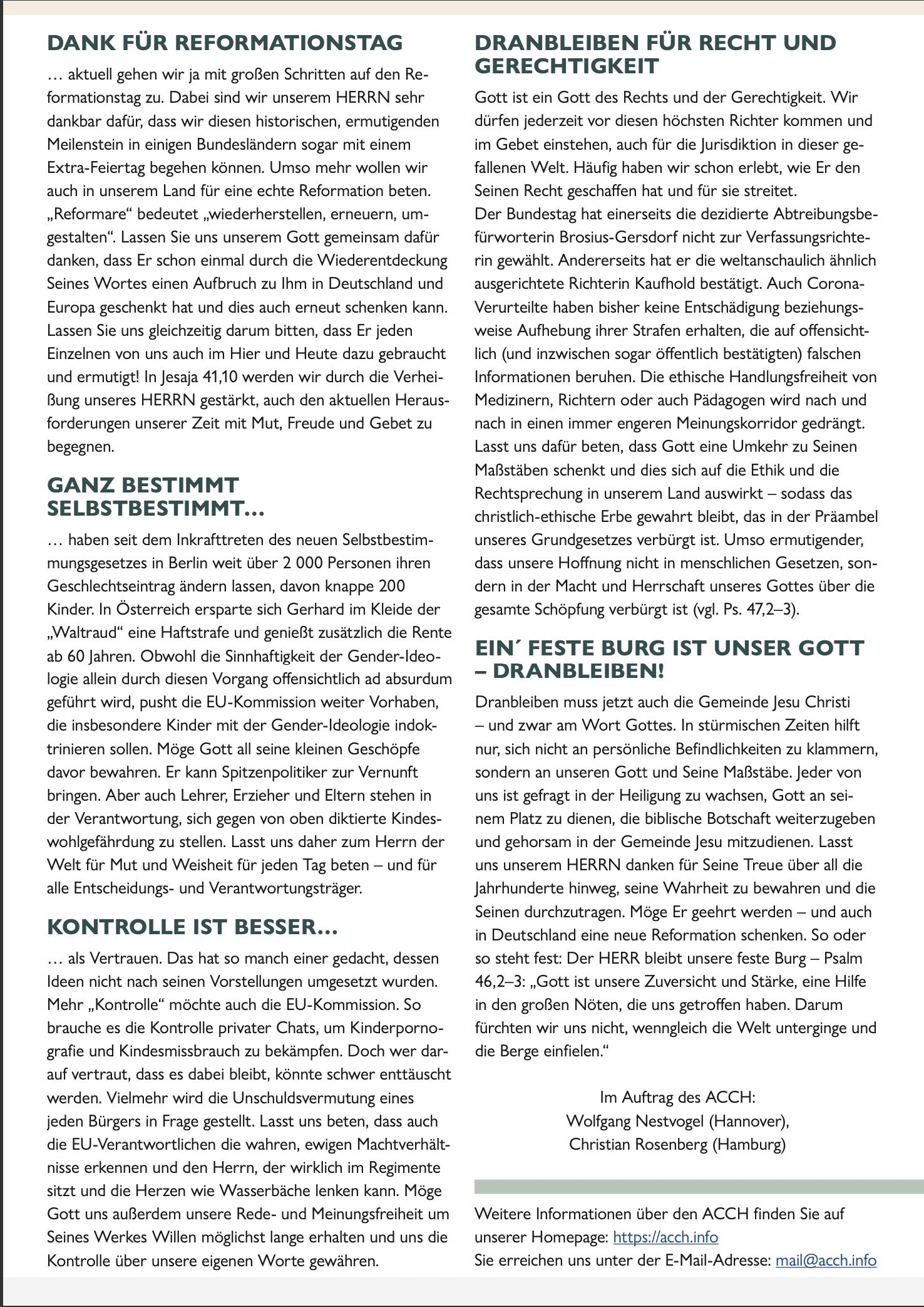 Keine Bibel- und Gebetsstunde am Donnerstag, dem 30.10.25 wegen der Verteilaktion und der Feier zum Reformationstag am Freitag.